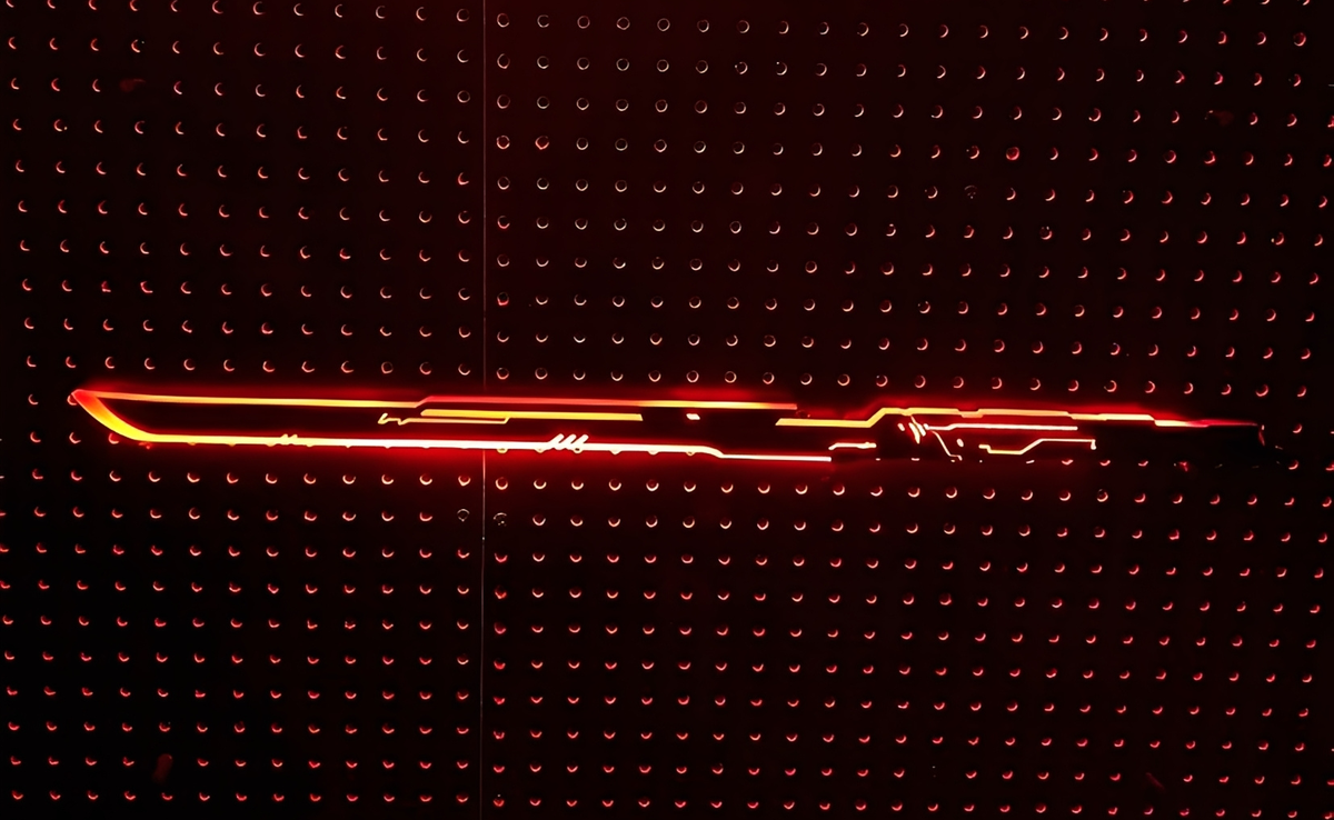 A slightly curved LED blade that throws a dramatic glow in the dark, perfect for photos, cosplay, or display!